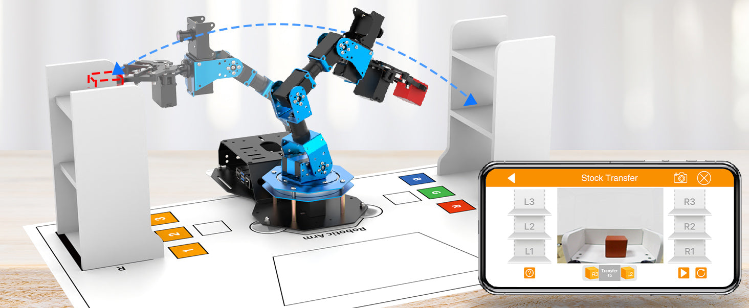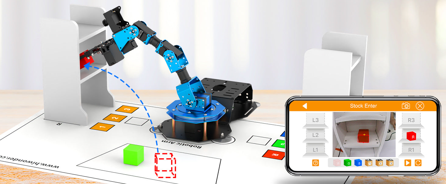 Set warehouse number for the goods deliver and enter in APP. ArmPi FPV will transfer the block intelligently.